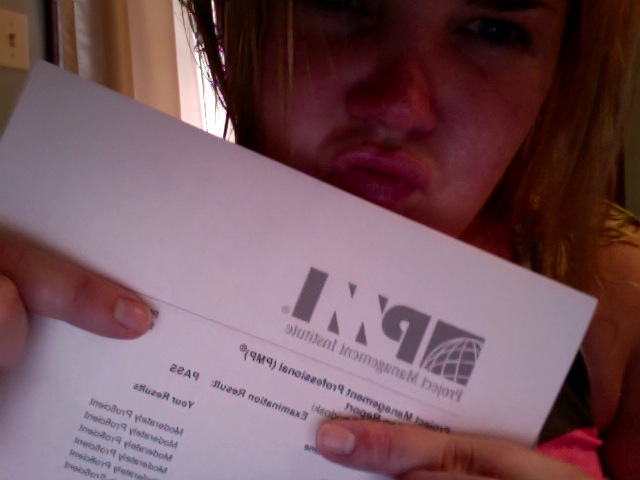 A Project Management Professional (PMP)-certified project manager! Yes siree Bob. Today I passed the dreaded 200-question, 4-hour Project Management Institute (PMI) exam and join the ~400,000 PMP holders worldwide.