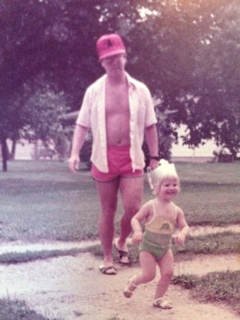 6. Awww your dad sounds amazing. I mean, just look at that trucker hat! Are you on a leash in that picture? I imagine it must have been hard to restrain so much awesome. Also, you were such and adorable little girl!