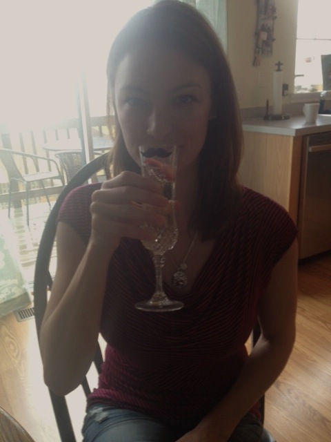 Julie Maida and her custom Rachel's Table champagne glass. You're welcome for my amazing photography.