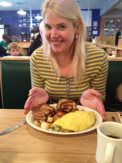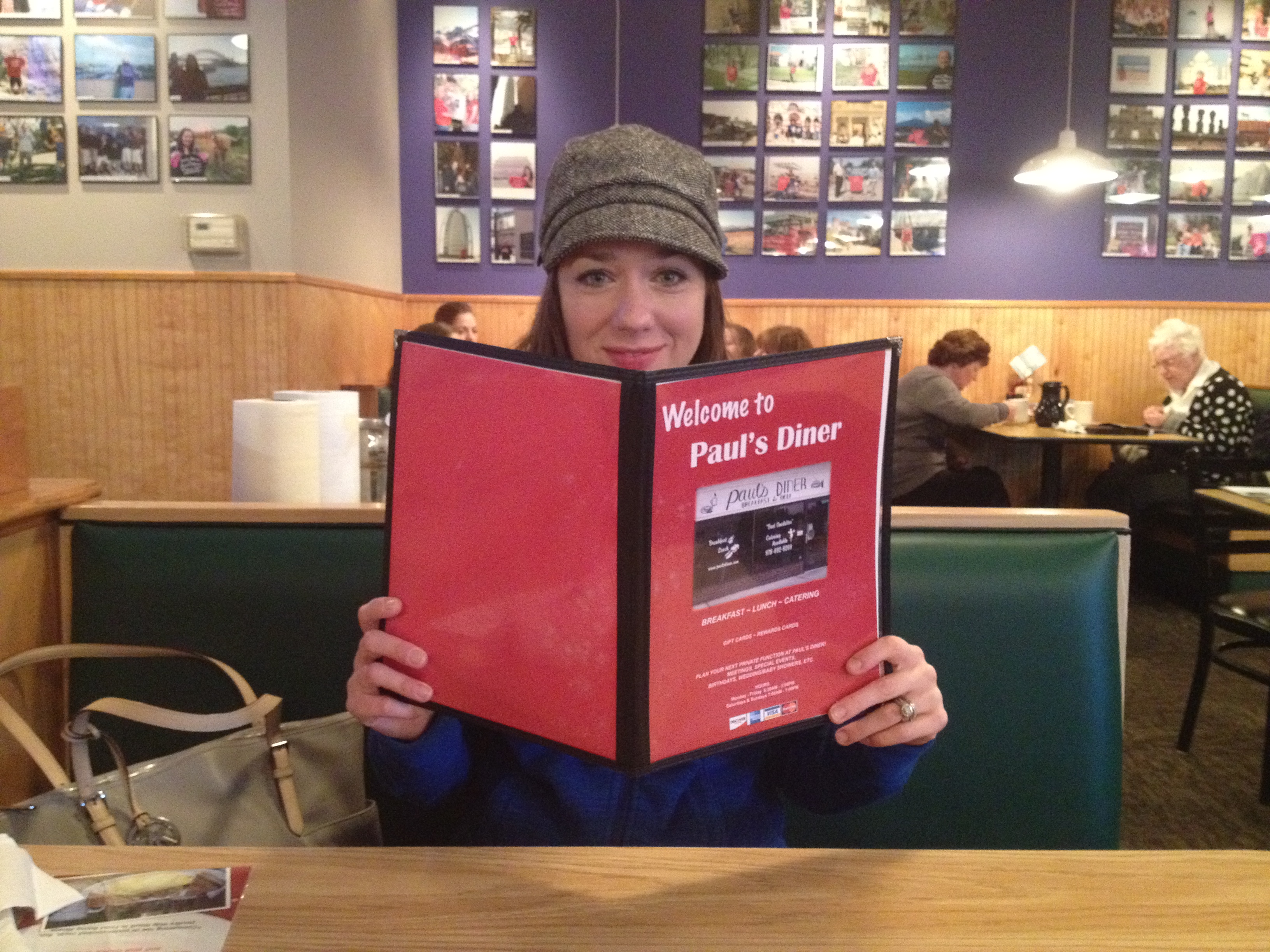 They gave us a complimentary rental car, and we killed time at a local diner.