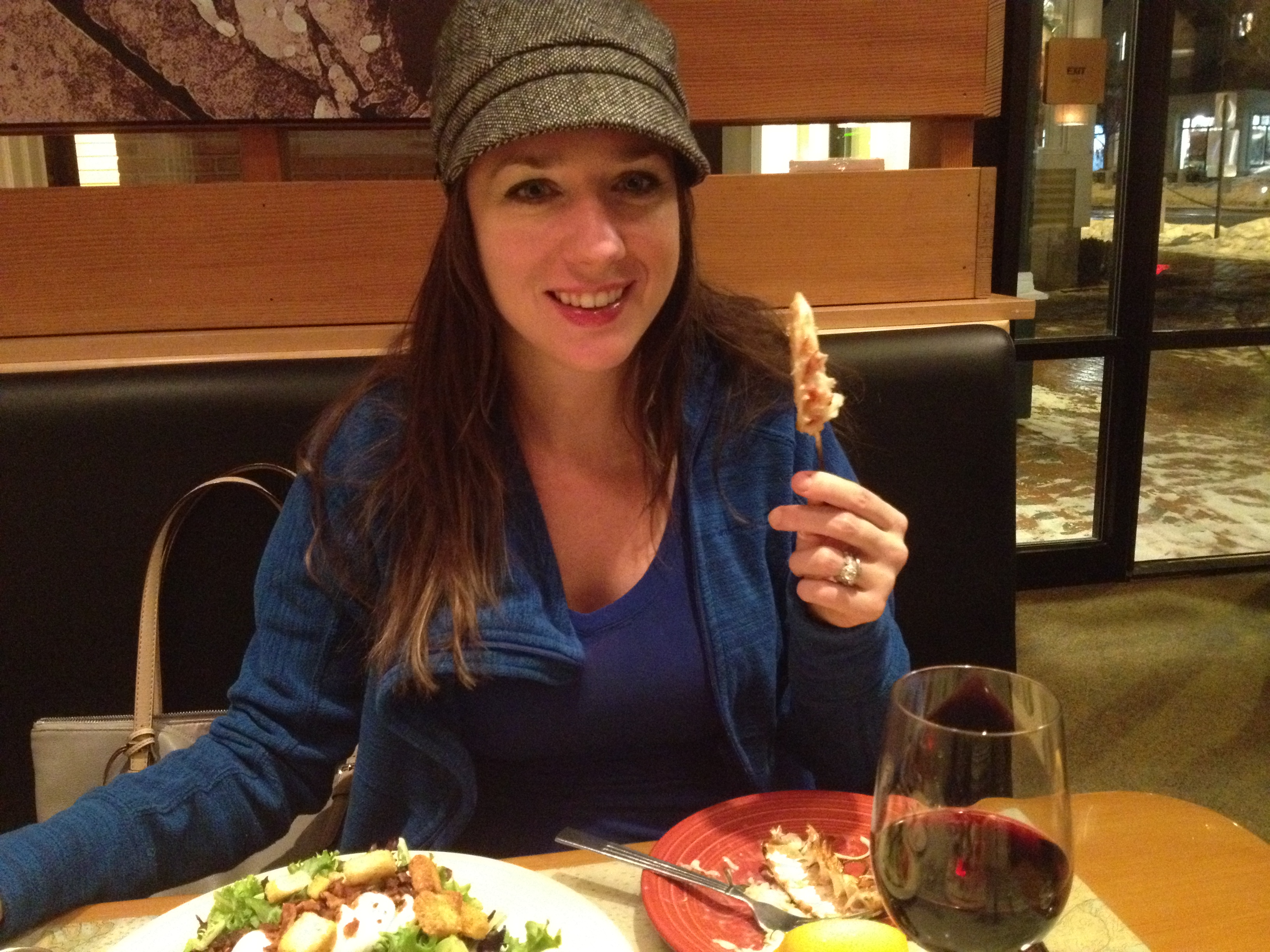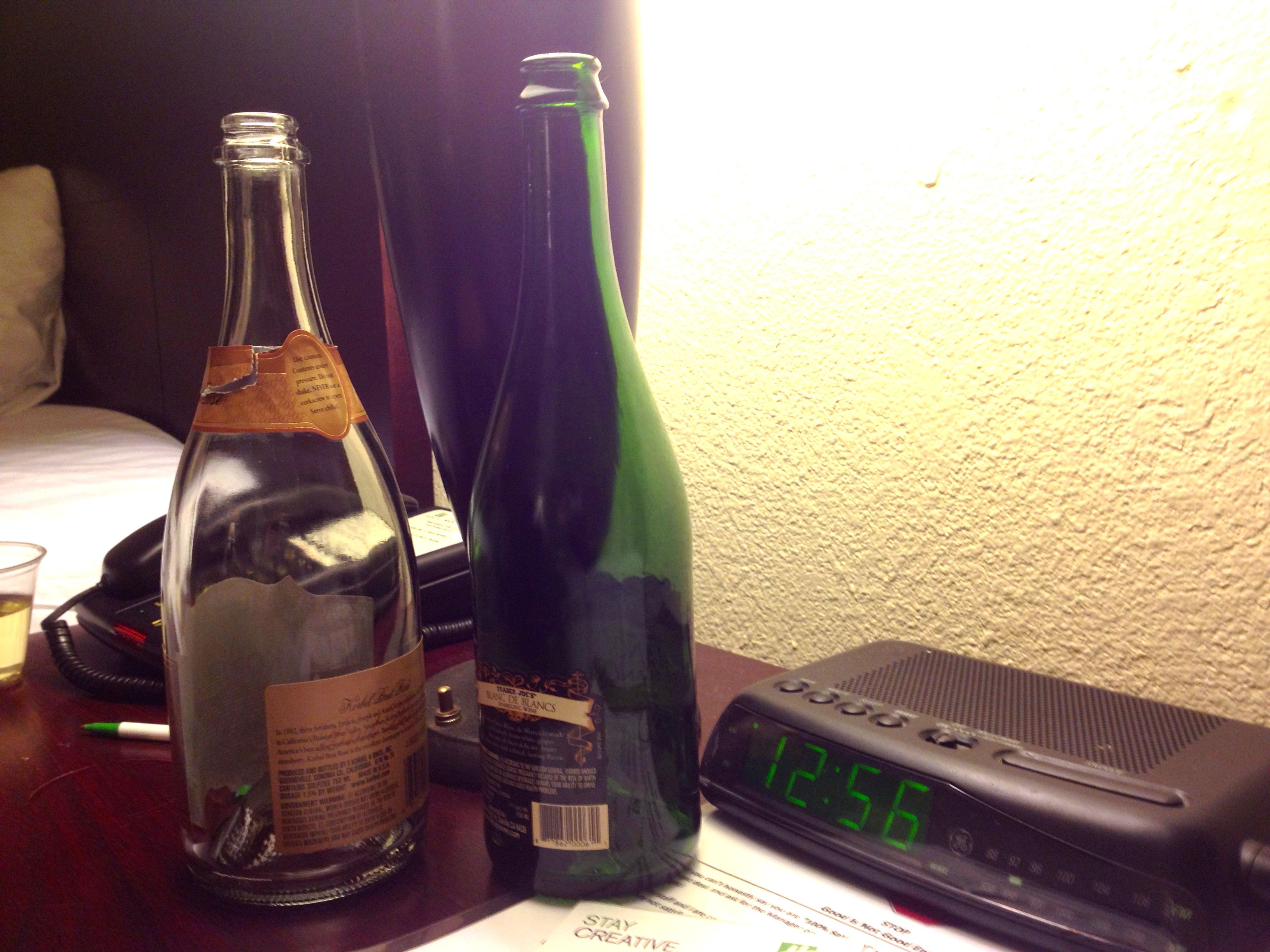 When we saw the receipt: 50% off! What’s more, our room overlooked a funky indoor pool, white lights and palm trees (you go on with your bad self, Holiday Inn), so we opened the balcony sliders, and more importantly, the champagne, and toasted to the kindness of strangers.