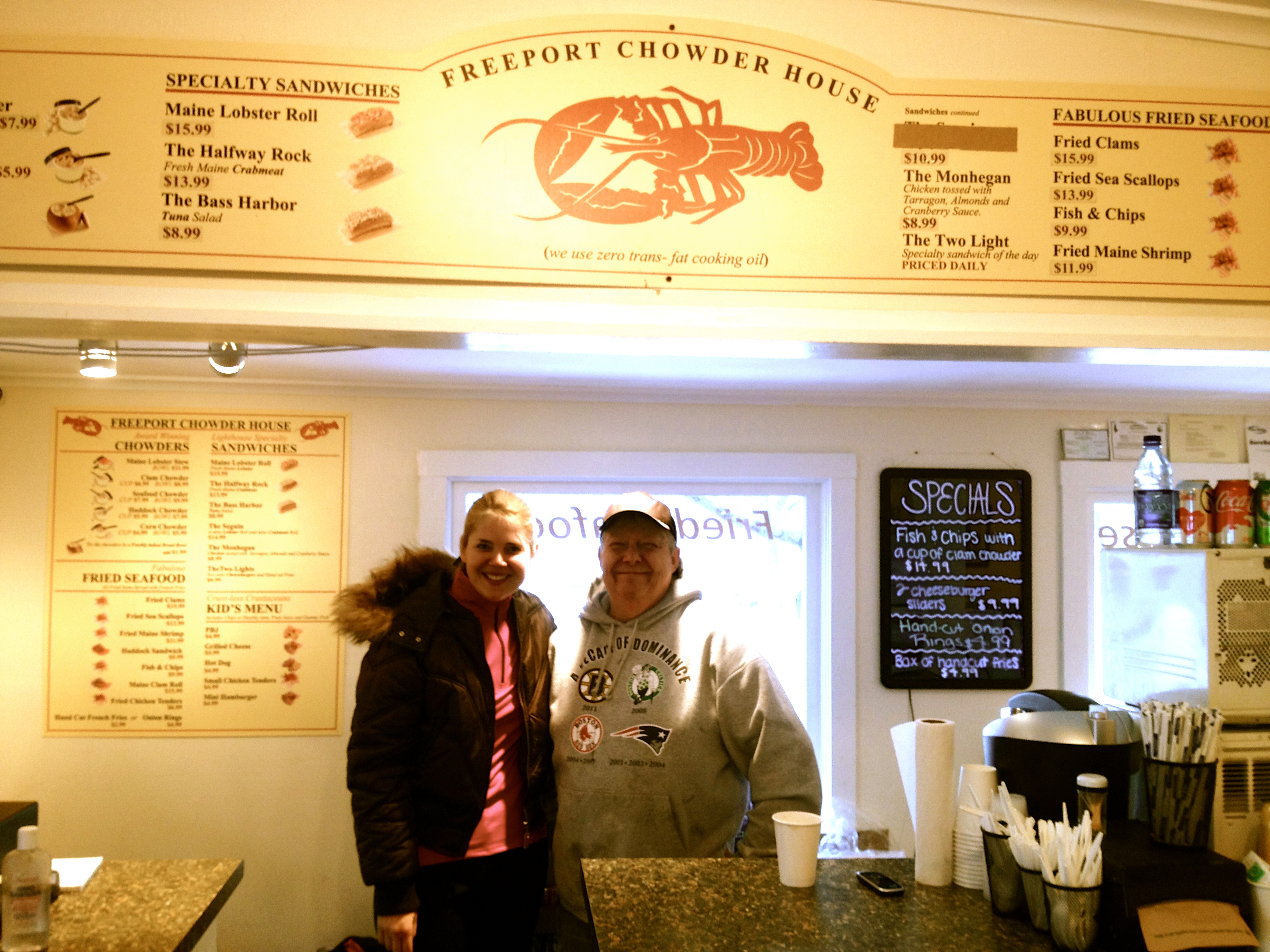 At one point, it was so slippery, a gift shop owner reached out a hand while holding the door, towing us inside. Later, when we peered longingly into Freeport Chowder House, the man inside waved us in.
