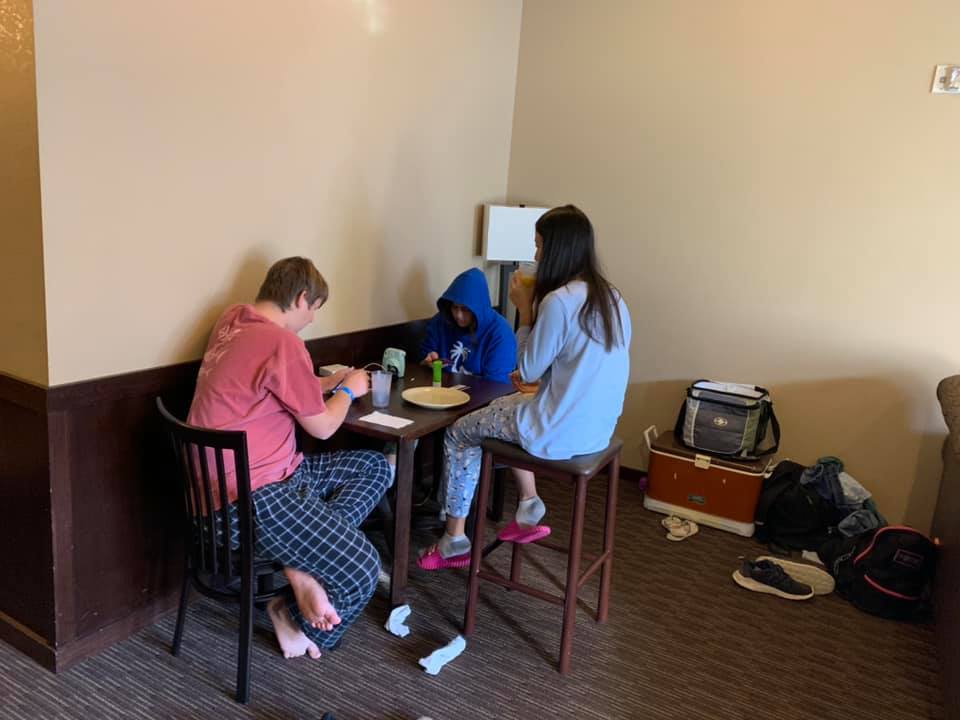 The teenage contingent bravely sampled the “pizza” and we mustered as much enthusiasm as we possibly could in front of the dim, lifeless “birthday” cake. We flicked the switch on the “fireplace” and stared at the snowless “mountains” just outside our window. “Can one snow tube without snow?” we wondered.