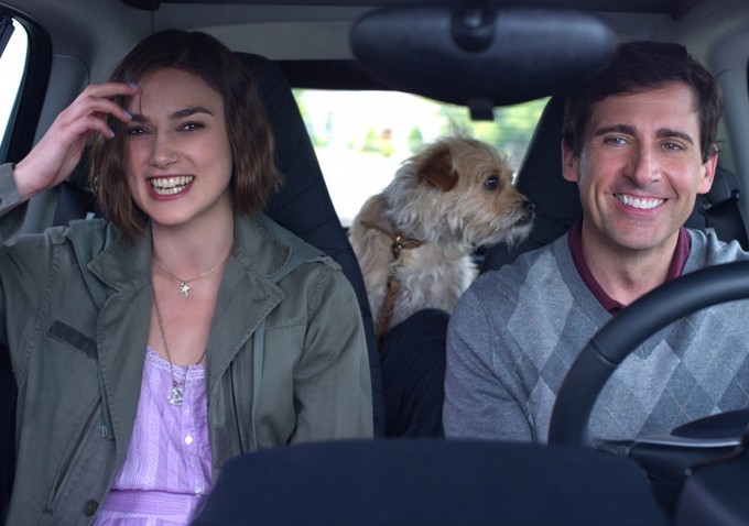 The black screen fades to a close-up of Carell (“Dodge”) and his wife in their car, staring straight ahead.