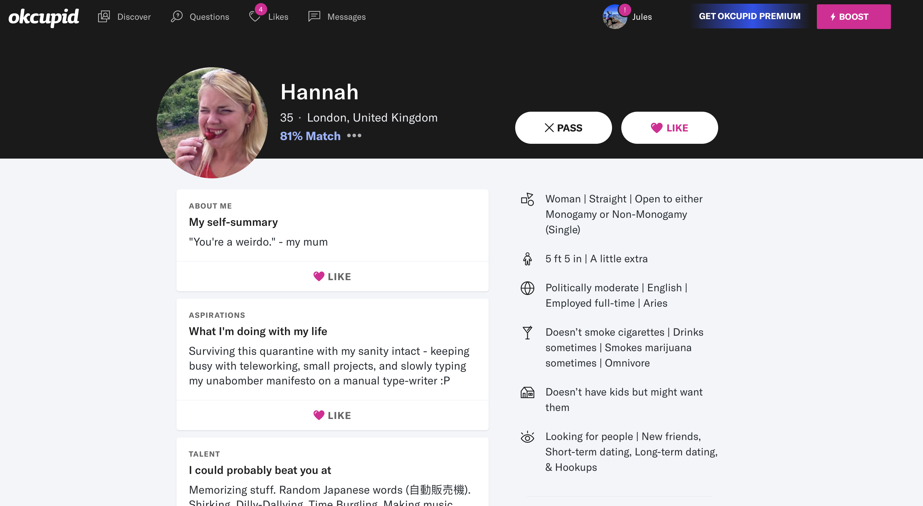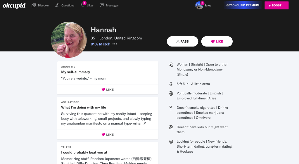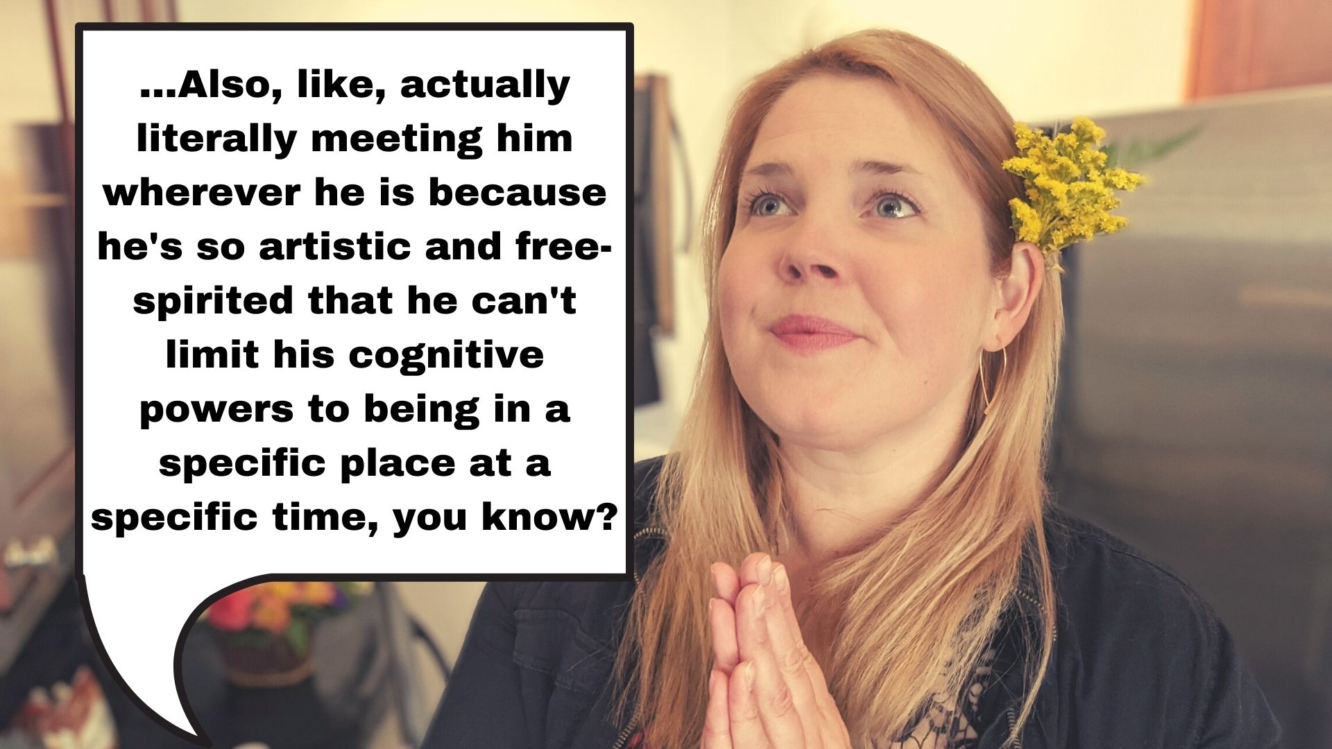 “Wellll I don’t drink, and coffee dates are so awkward and I always wind up getting ghosted.”
