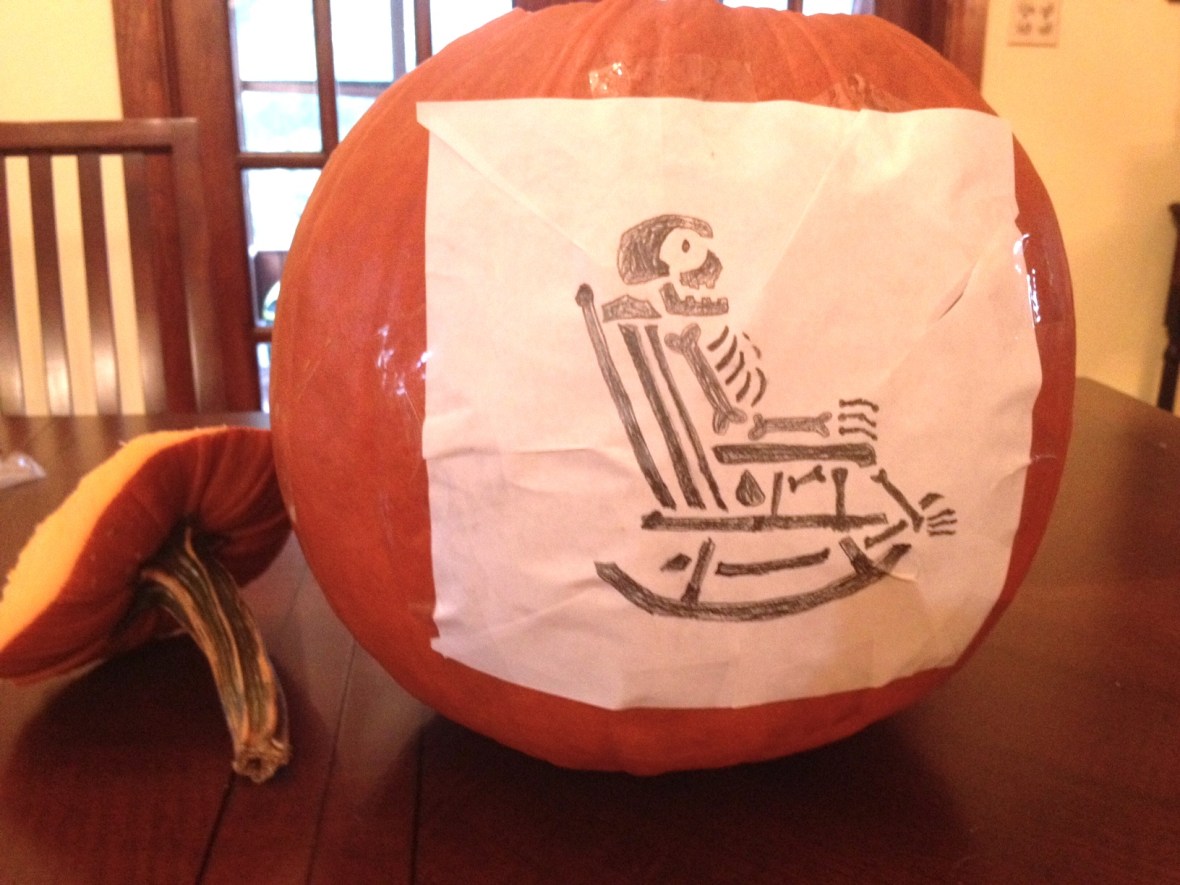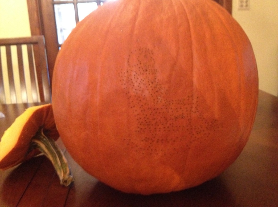 While I designed this pattern, I used the Pumpkin Masters method of poking holes into the pumpkin to transfer the pattern. And no, they didn’t compensate me in any way to say that. In fact, never mind. I transferred this pattern using only the powers of my mind.