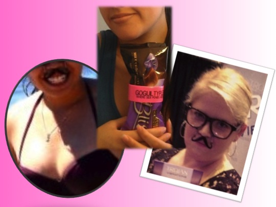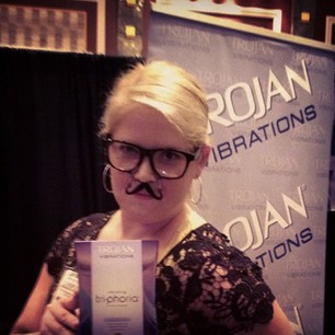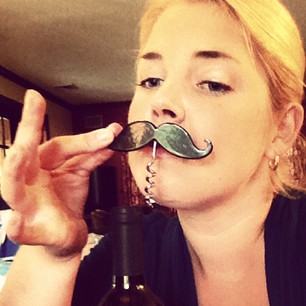 I recognized the dazzling, scarlet vision as soon as we walked up to the restaurant. Rache and I hugged and immediately ordered drinks. Then it was on to handmade cards and peppers and ‘stache glasses.