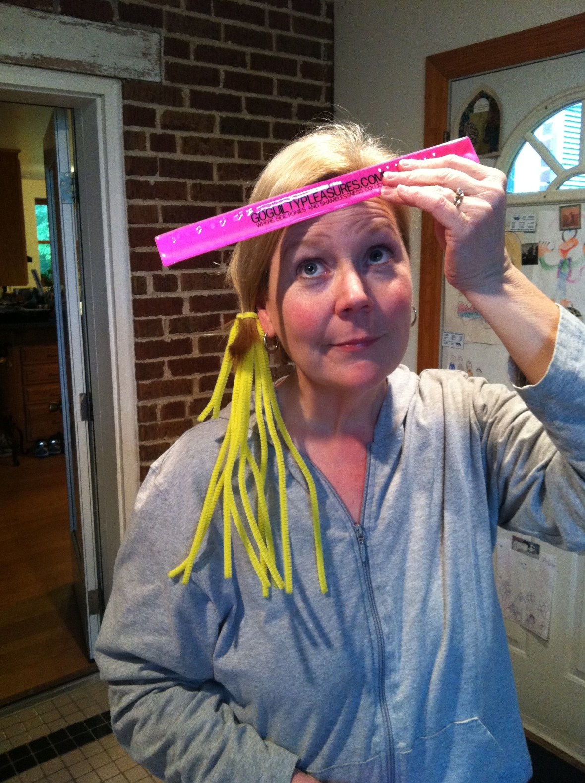 Next comes the best part of the game. I BECOME you. I put on the Side Pony of Super Fun-ness. I put my custom-crafted Uncle Jesse mask on my cat, Beeby (this part isn’t as easy as it might sound). I line up some champagne (actually Asti – I’m on a budget) and break out the bacon candy bars and Reeses for snacking. I use mice instead of chipmunks as my life coaches because they’re a lot easier to catch around my house. That may be why they don’t really give me any advice, no matter how many times I ask. But I pretend they do while I make funny, fun faces. I get lots and lots of guilty pleasure from taking lots and lots of pictures of myself being blondly side-ponied and fun. A lot.