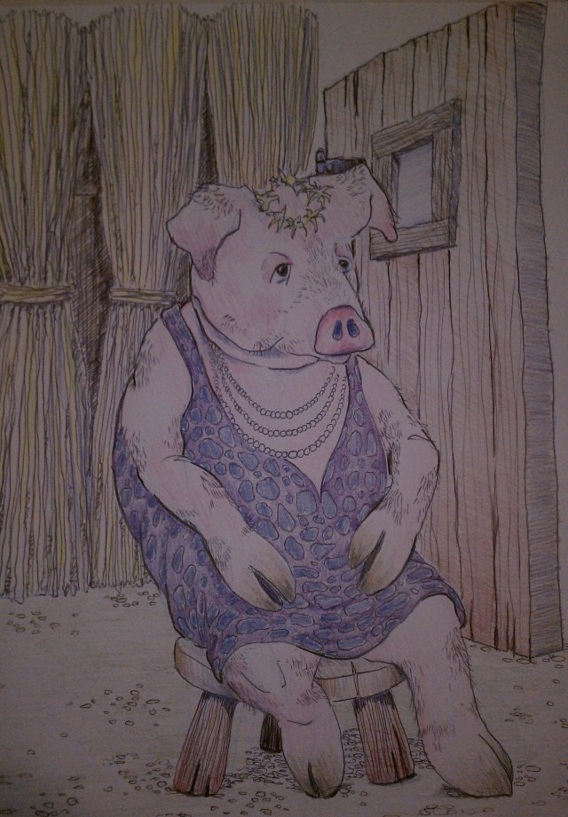 What’s more, he’s a fantastic artist. For k8edid’s “7 Deadly Sins” writing contest (which he’s already won twice, ahem), he also creates illustrations. Here’s my favorite – can you guess which sin this was for? (Just kidding, this one was done for another incredible story, Forty-Seven Shades of Pink or as I like to call it, Ode to Bacon.)