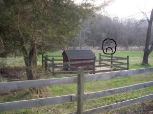 MILE 1.52: I have not yet figured out why these people have a miniature pony, nor why I feel so disappointed when it chooses to hide in its shack (in case you don’t already know, I could do without horses).