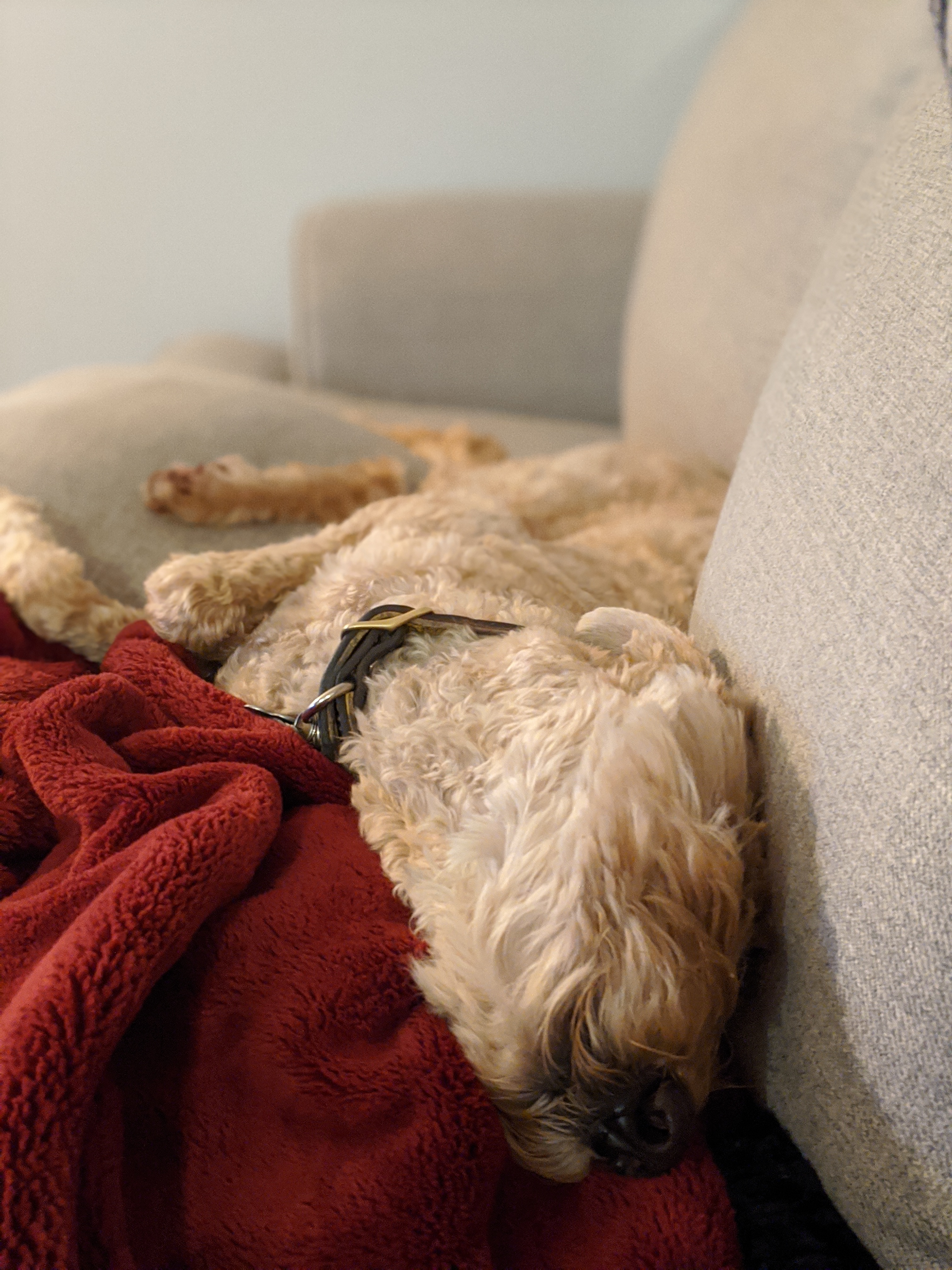 When Michael arrived and I heard his voice, soft and sweet, I knew I had nothing to fear (at least in the you-want-to-see-my-head-unattached-to-my-body kind of way). I created a distraction that I hoped would put him at ease: dog tricks! I’d filled Uncle Jesse’s puzzle with treats in preparation.